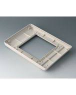 Hidden wall mounting. While closed, the entire case (version with battery compartment or base plate with handle recess) can be mounted on the wall, fixed and also removed again by means of the wall suspension element. Supply 1 wall suspension element with snap-in mechanism.