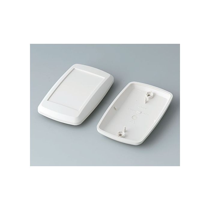 Assembly unit: Modern, flat styling. Easy to carry. Recessed operating area for membrane keyboards. Fixing supports for PCBs/components in the case bottom. Intermediate ring EL as separate article necessary. Supply: 1 top and bottom part EL, 2 self-tapping screws.