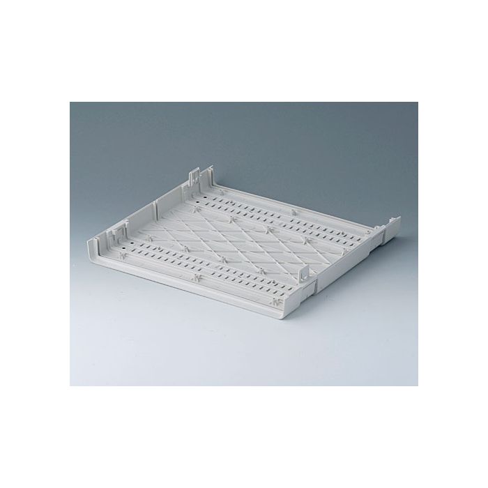 The case shells (2 pcs necessary) safely lock with each other by pressure. With injection-moulded fixing towers for PCB mounting. For combination with side panel and snap-in panel (separate article).